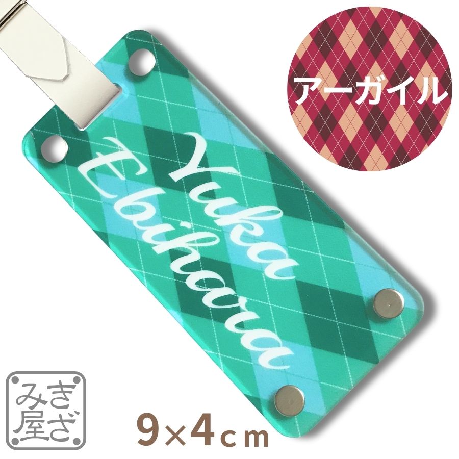 【新商品】二層 丈夫 ネームプレート ゴルフ 名入れ さわやか アーガイル カラー グロス 90×40 mm ネームタグ 目立つ 本革ベルト バッグタグ おしゃれ 名札 タグ ゴルフネームプレート レディース 新素材 きざみ屋 キャディバッグ 部活 バッグ チーム サークル ブルー