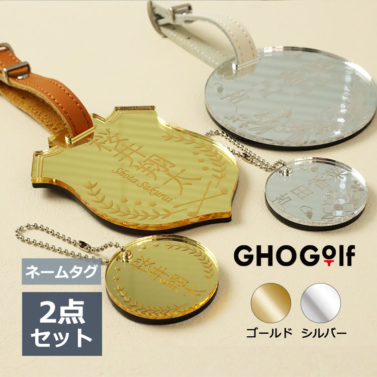 ネームプレート 名入れ おしゃれ【 ミラーネームタグ DX 】 本革 刻印 ベルト アクリル ゴルフ バッグ ネーム ゴルフ用品 名前 彫刻 キーホルダー 贈り物 ギフト プレゼント 記念品 コンペ 景品 父の日 退職祝い 誕生日 キャディバック 金 銀 ゴールド シルバー GHOGOlf