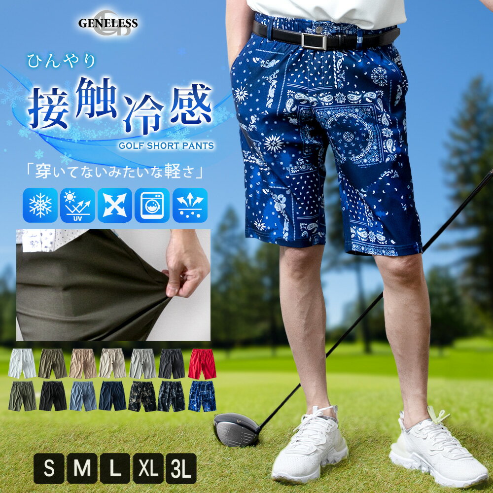 ゴルフウェア メンズ パンツ ハーフパンツ 膝丈 ストレッチ ゴルフ ショートパンツ 短パン 夏 スポーツウェア ゴムウエスト おしゃれ 涼しい バンダナ カモフラ 迷彩柄 全14色 5210-6308 ジェネレス