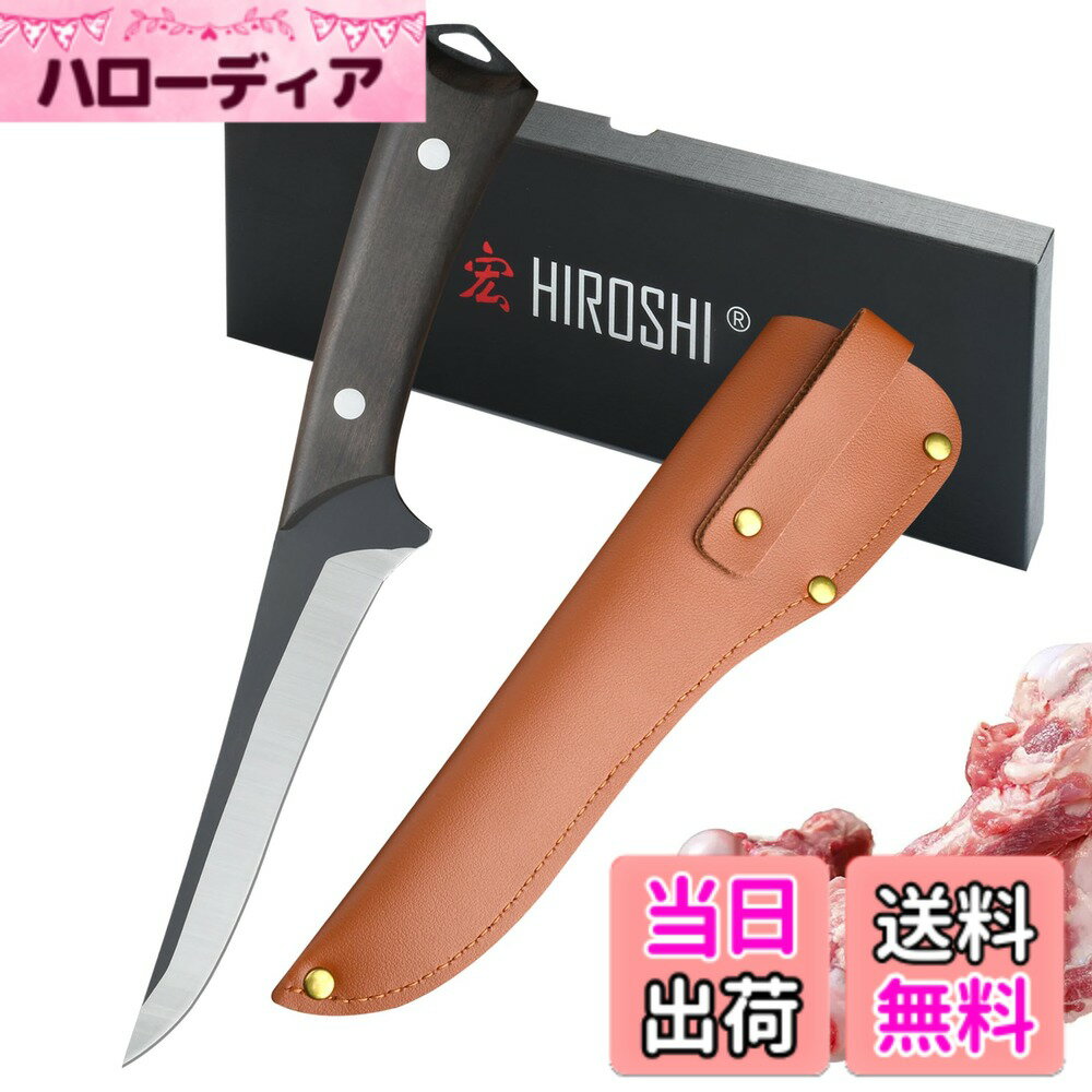 【送料無料】HIROSHI 骨スキ包丁 骨引きナイフ ボーニングナイフ 料理包丁 13cm 黒面処理 錆びにくい アウトドアナイフ 防災 キャンプ用 皮剥き 狩猟解体 鞘付き 天然紫檀木柄 持ち易い