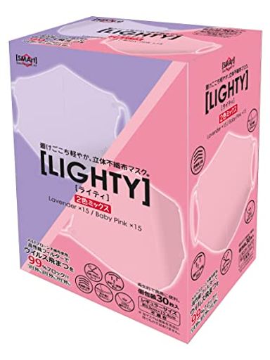 [アドバンス]立体不織布マスクライティ2色ミックスラベンダーxベビーピンクレギュラーサイズ約13x12.4cmSMArtSLA-0230枚入り
