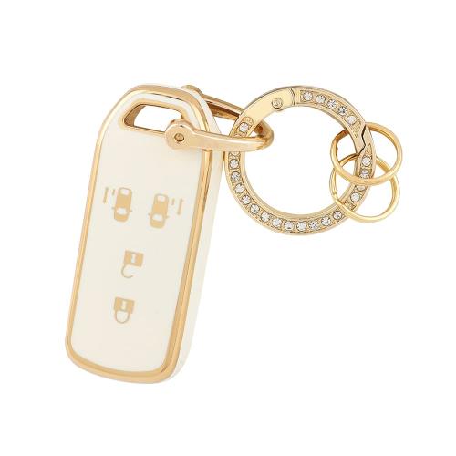Catland キャデラック キーホルダー キーケース 5ボタン Cadillac Escalade CTS SRX XT4 XT5 XT6 ATS STS CT6 ATS-L 2015 2016 2017 2018 2019 鍵 キーカバー スマートキーケース キーチェーン ドレスアップ パーツ アクセサリー 工具付き クリーミーホワイト ゴールデンエッ