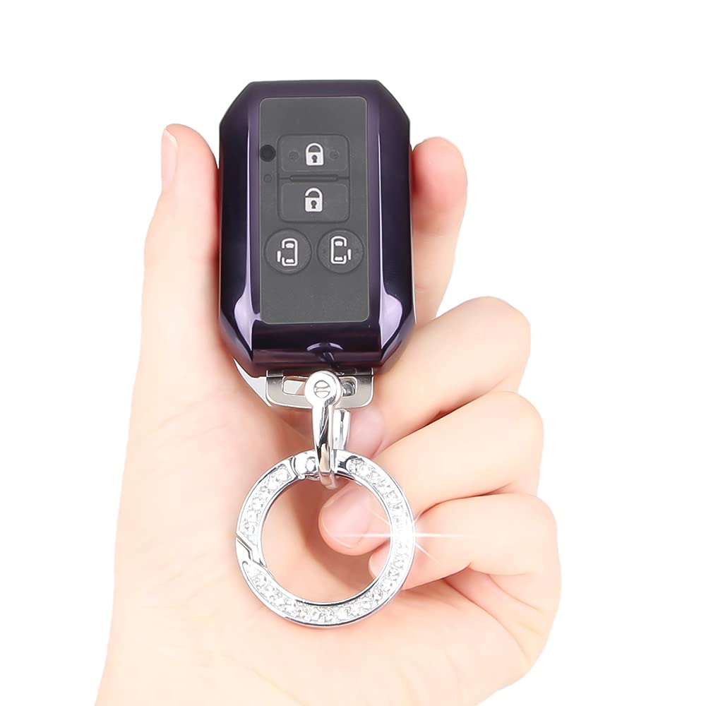 Comdanya スズキ SUZUKI 新型ハスラー スベーシア ワゴンR スイフトRS ハイブリッド スティングレー ジムニー シエラ クロスビー (XBEE) 専用 キーケース スマートキーカバー キーホルダー TPU 軽量(パープルブラック+キーリング)