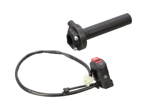 適合車種 ~'20 HRCグロム(GROM4) | '21~ HRCグロム(GROM5) ハイスロットル化(ノーマル比) : 約10%アップ ノーマルスロットルケーブル使用可 ノーマルの一体型スイッチとスロットルハウジングを別体化。特にハンドル交換時のスロットルケーブルの取り回し自由度が向上します。 ※別途ハンドルグリップが必要です。(適合グリップ長120~125mm) ※ハンドルバーへの回り止め用穴あけ加工(φ4・φ5)が必要です。