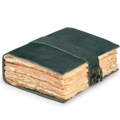 革装丁のヴィンテージジャーナル(男女兼用)-影の書-ロック留め-アンティークデッケルエッジハンドメイドペーパー200ページ-ターコイズ-10x7インチ(レザービレッジ製)
