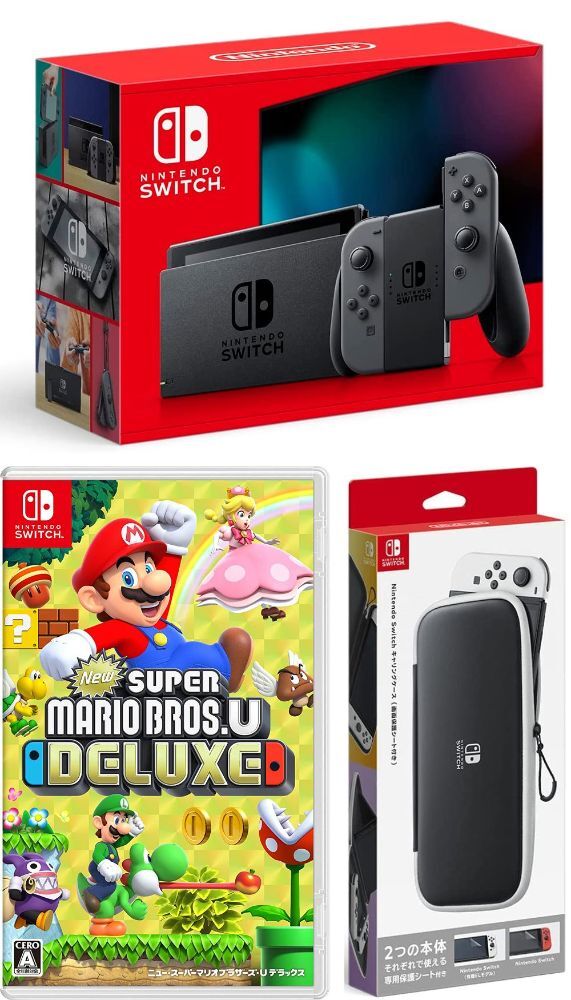 【無料ラッピング対応】Nintendo Switch Joy-Con(L)/(R) グレー+New スーパーマリオブラザーズ U デラックス (ソフト)+ キャリングケース任天堂スイッチ 本体クリスマスクリスマスラッピングお誕生日