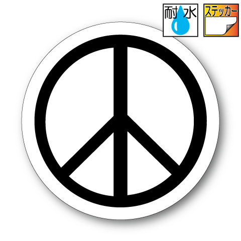 ピースマークステッカー! 仕様:屋外耐候 耐水(防水)・耐候性を強化した仕様です。お車など、屋外でもご使用いただけます。 ▼サイズ 直径 7.5cm ▼材質 : 屋外用塩ビ シート Made in JAPAN ・ 日本製 □ご注意□ ・ご使用のモニターにより画像と実物とで違いが出る場合がございます。 ・剥がす際は、端からゆっくり剥がすと粘着剤が接着面に残りにくい材質となっております。(接着面の材質によっては跡が残る場合もございます。 本商品ご使用された結果発生した損害について、一切の責任を負えませんので予めご容赦ください。)