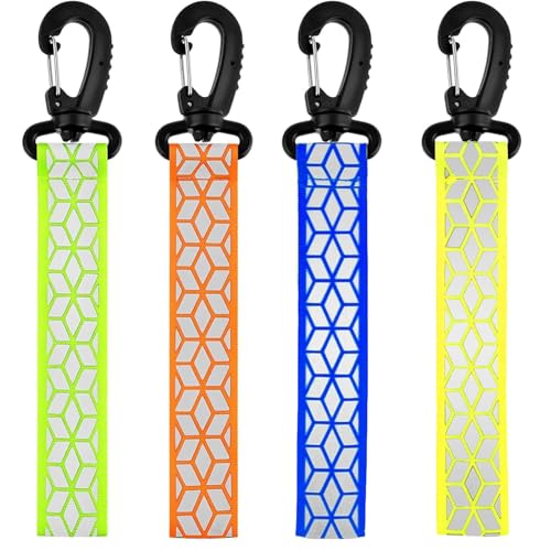 [DELUXEFOX] 反射キーホルダー 反射 ストラップ (4個セット) 反射ペンダント 反射 安全ストラップ 交通安全 夜間反射 バッグチャーム アクセサリー 自転車用 反射タグ 通勤 通学 子供向け アウトドア ジョギング 安全 カラビナ