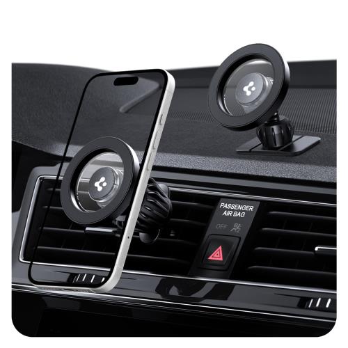 Spigen スマホホルダー 車2 in 1 構成強力なマグネット内臓 MagSafeリング付属 追加ダッシュボードマウント付き スマホスタンド 車載 iPhone 16/15/14/13/12シリーズ MFT13 ACP08314 (ブラック)
