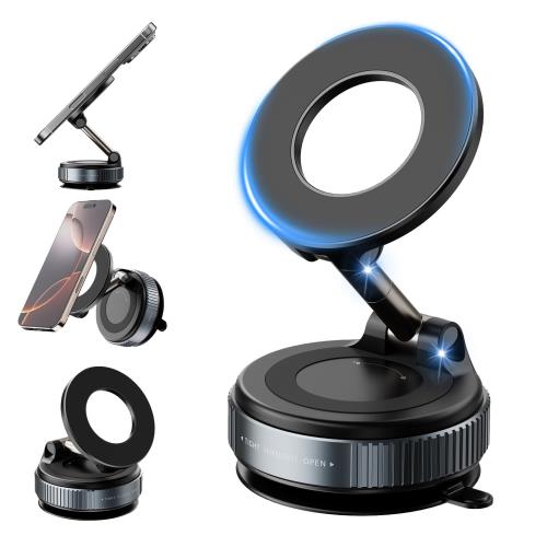 EVADAマグネット式 車載スマホホルダー 強力磁石 真空吸着 車用ホルダー iPhone Android 対応 360°回転 穴あけ不要 車内 オフィス 自宅 両用 スマートフォン スタンド ホルダー (Black)