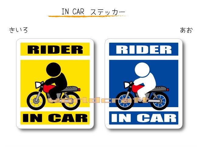 IN CAR ステッカー大人バージョン【バイク・ライダーバージョン】〜RIDER が乗っています〜・カー用品・おもしろシール・オートバイ・車、トランスポーターに