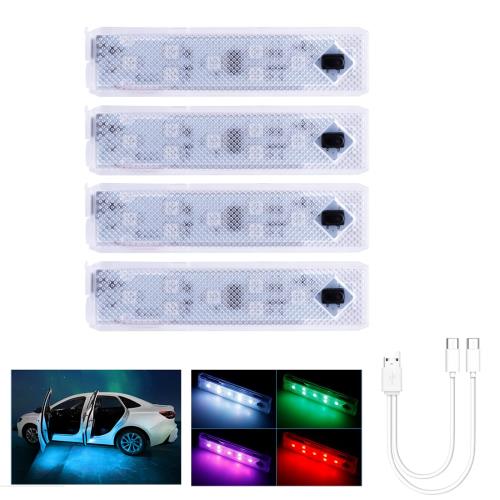 Catland LED カーテシランプ 車 ドアランプ RGB 警告灯 赤 青 緑 白 ピンクパープル アイスブルー 黄 常時点灯 点滅モード 追突防止 ドア ライト 薄型 厚さ0.89cm マグネット式 USB充電式 配線不要 赤外線センサー 自動オンオフ 4個セット