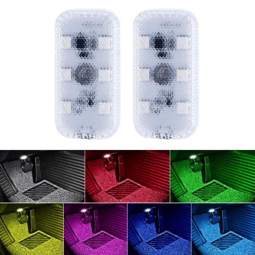 Catland 車 LED ライト 7色 USB 充電式 タッチライト 車内 白 赤 青 緑 紫 黄色 アイスブルー 7色サイクル ルームランプ 足元 ランプ 磁石 配線不要 汎用 コンパクト 2個入り