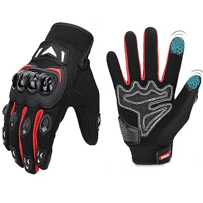 KEMIMOTO バイク グローブ 夏 メッシュ 通気 バイク用グローブ 軽量 スマホ対応 夏用グローブ オートバイ手袋 滑り止め 耐衝撃 プロテクト 春夏秋 レッド M
