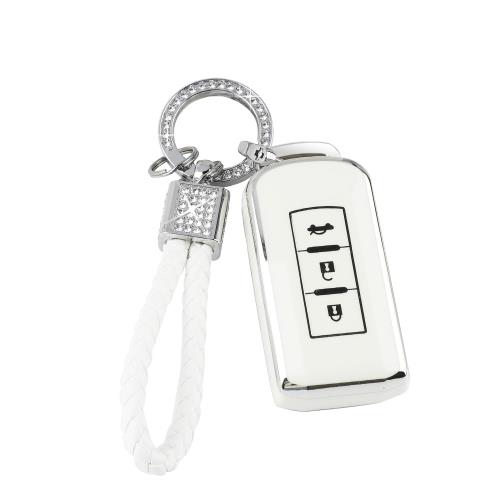 [Catland] 三菱 キーホルダー キーケース 3ボタン RVR ekワゴン ekスペース ミラージュ アイミーブ アウトランダー ekスペース ランサーエボリューション デイズ 鍵 キーカバー スマートキーケース キーチェーン ドレスアップ パーツ アクセサリー 工具付き クリーミーホワイ