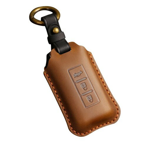 [Kinotaka] 三菱 日産用 スマートキーケース キーカバー 本革 レザー 3ボタン アウトランダー RVR ekワゴン ekスペース ミラージュ アイミーブ ランサーエボリューション デイズ デイズルークス(DAYZ ROOX) 等に適用 キーホルダー (ブラウン)