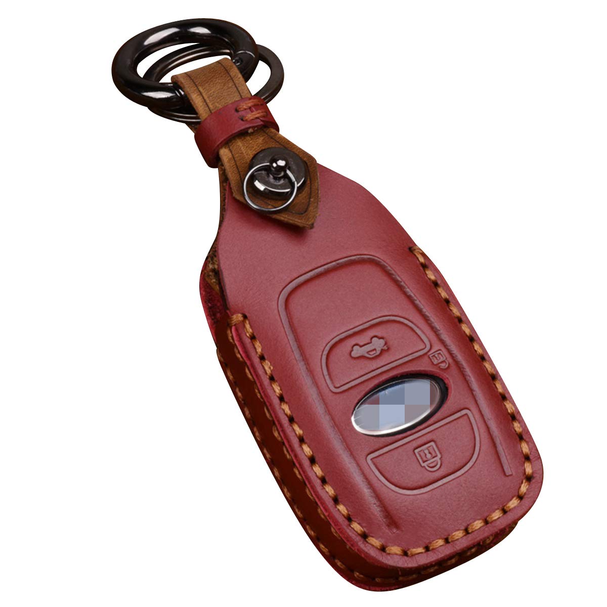 YANMW スバル キー ケース 本革 レザー製 キーケース キーカバー フレヴォーグ レガシィ B4 インプレッサ G4 WRX S4 STI XV Outback Forester BRZ スマピタくんタスタイリッシュ 汚れ 滑り 傷 防止(赤)