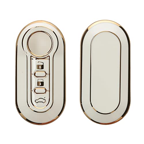 kwmobile Fiat Lancia 3-ボタン 折りたたみ 車のキー対応 キーケース - キーカバー 鍵カバー TPU 光沢仕上げ - 車鍵 耐衝撃 保護 白色/ゴールド