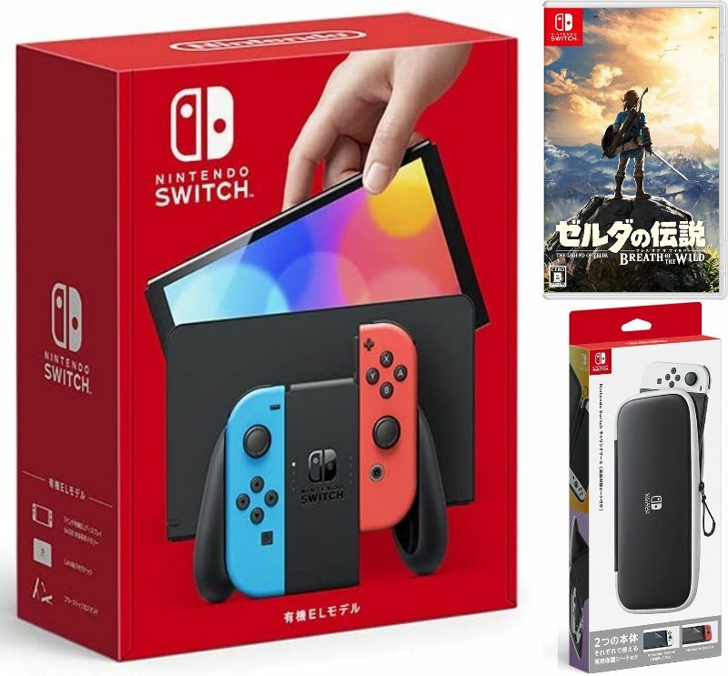 【無料ラッピング対応】Nintendo Switch(有機ELモデル) Joy-Con(L)/(R) ネオン+ ゼルダの伝説 ブレス オブ ザ ワイルド(ソフト)+ キャリングケース任天堂スイッチ 本体クリスマスクリスマスラッピングお誕生日