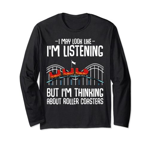 IMayLookLikeI'mListeningButI'mThinkingAboutRollerCoastersデザイン。あなたまたはあなたがローラーコースターが大好きですか?その後、このデザインを手に入れてください。このアミューズメントライドパークカーズサーカムデザインは、きっと気に入るでしょう。このデザインは誕生日に最適です。 このアンティーク調ファニーグラフィックノベルティ衣装は、公園の鉄道トラック愛好家の面白い引用句のデザインに最適です。家族全員、子供、友達、家族、姉妹、兄弟、母、父、娘、妻、夫、ガールフレンド、ボーイフレンドへの最高の面白いプレゼント。 長袖tシャツ