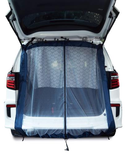 カジュアルブルー501/丈160 cm x 幅156 cm 1枚組/501NEWクリップ付き・Size:丈160 cm x 幅156 cm 1枚組・車中泊防虫対策目の細かいメッシュ生地なので、車内への虫の侵入を防ぎます。メッシュで風通しが良いです。後ろドアを開けただけで虫は入らず風は入るで快適に過ごします。・波模様カーテン付き日差しや昼間の外からの視線を遮る機能があります。また、カーテンにはロープが付いていますので、使わないときはロープを利用してカーテンを収納できます。・フック付き風に吹かれないように、付属のフックをタイヤに掛けることができます。また、フックストラップの長さは調節可能で、多様な車種に対応できます。・ダブルジッパーと締付けベルト外側と内側にファスナー付き、防虫ネットの端まで引っ張ることができ、物を渡すことも簡単です。防虫ネットの端は締付けベルトも付き、締付け効果が良く、蚊が入りにくいです。・商品仕様と構成カラー:ネイビーブルー。商品サイズは横約1600mm X 高さ約1560mmで、バックドアのサイズはその以内に取り