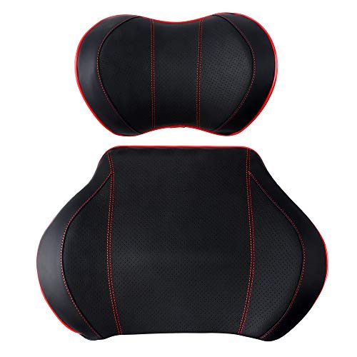 Catland 車用 クッション 低反発 パッド 車 首枕 背当て 背もたれ 頭 首 背中 サポート 柔らかい ウレタン PU レザー おしゃれ オフィス 椅子 運転 ドライブ ブラック 黒 運転席分だけ