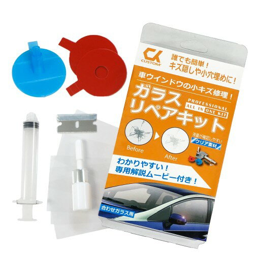 自動車のフロントガラス補修セット (リペアキット) キズ・ひび割れなどを簡単に補修出来ます。 ガラス補修に必要な道具をすべてオールインワン! 適合:自動車のフロントガラス ※サイド・リアには不可 簡単、分かりやすい日本語説明書・日本語説明動画が付き!