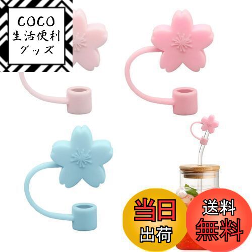 【送料無料】Doyime ストローキャップ (3pcs) ストローカバー ストローチップカバー シリカゲル 防塵防滴 再利用可能な 耐久性 漏れ防止 かわいい さくら 飲用 装飾用 インテリア用 適用7-8 mmストロー (ライトブルー+ライトピンク+ピンク)