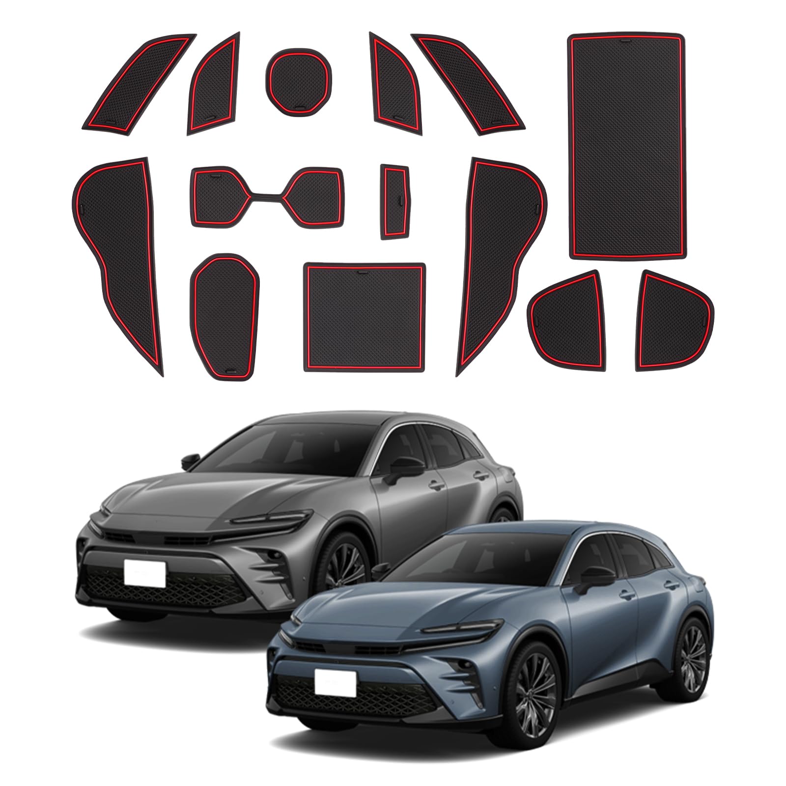 SXCY 新型 トヨタ クラウンスポーツ 専用 ラバーマット インテリアラバーマット Crown Sports ドアポケットマット クラウン スポーツ 専用 滑り止めシート 傷防止マット ノイズ軽減 クラウンスポーツ アクセサリー 内装パーツ 防汚れ ノンスリップマット 14枚 レッド