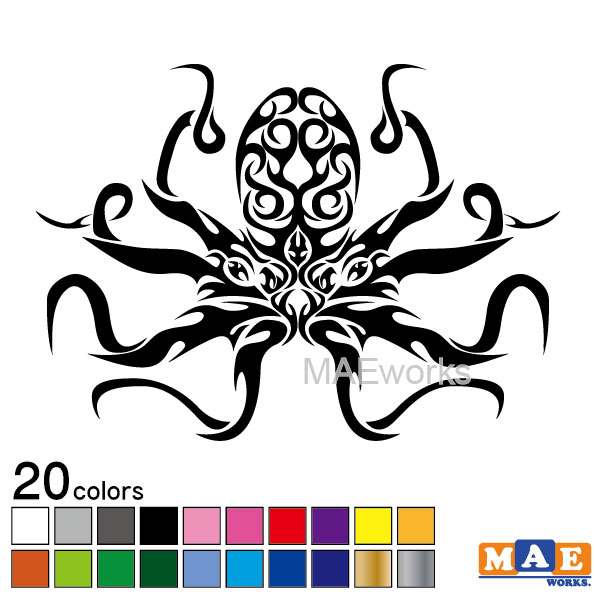 全20色 トライバル カッティングステッカー タコ 蛸 たこ 釣り 魚 フィッシング アウトドア 海 車 バイク クーラーボックス バケツ かっこいい マエワークス オリジナル TF-06