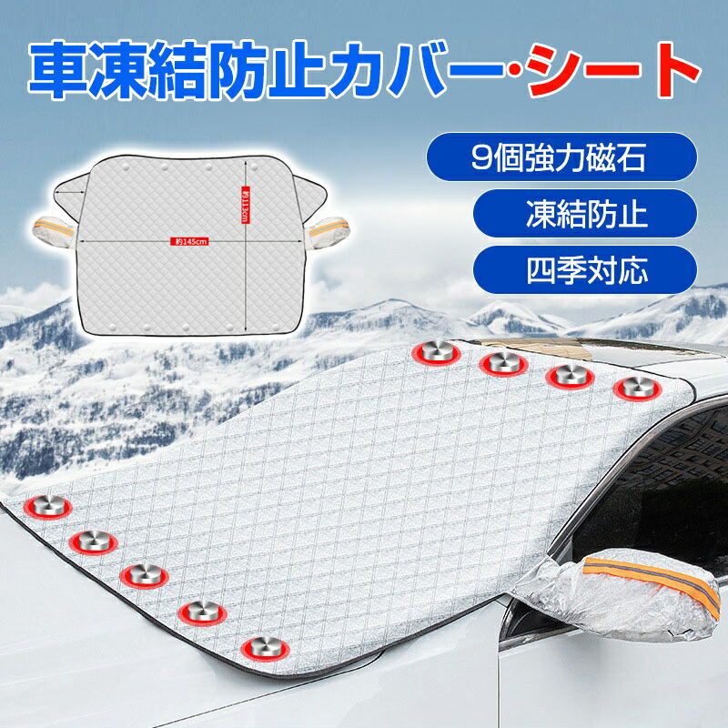 フロントガラス 凍結防止 カバー 霜よけ 車用凍結防止カバー 凍結防止シート サンシェード 内臓磁石9枚 車用 日焼け防止 日よけ 遮光 車中泊 夏冬兼用 軽自動車 SUV 普通車 UVカット 冬 雪 寒波 カー用品 視界 簡単 便利 グッズ TIKEBOUS