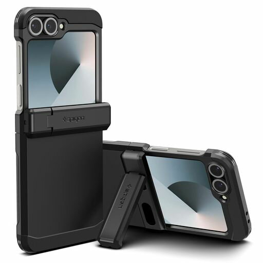 SpigenGalaxyZFlip6ケーススタンド付き強力保護ヒンジ保護背面保護全面保護耐衝撃ワイヤレス充電対応ギャラクシーZフリップ6タフ・アーマーACS07849(ブラック)