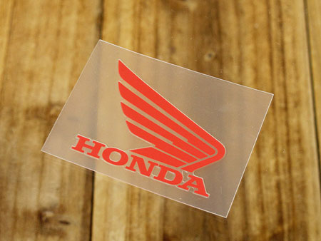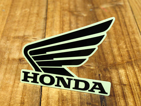 ホンダ2輪のエンブレム、ウイングマークステッカー ●ステッカーサイズ 約縦3.6センチ×横4.6センチ ●デザイン部分だけ貼れる切文字タイプ ●屋外使用OK 注意事項 色合いはモニターによって実物と異なって見える場合があります。ステッカーの貼り方 用意する物 ★ ゴムへらかやわらかい布・・・・・(貼るときに擦るのに使用) ★ 布・・・・・(水分をふき取ります) ★ 台所用洗剤(中性)等・・・・・(汚れや油分を取るのに使用) ★ テープ・・・・・(大きいステッカーの場合、仮留めに使用) 作業手順 ワンポイント ヘルメットなど曲面に貼る場合はドライヤーを当て、素材を柔らかくして張りながら少しずつ貼ればしわにならず上手く貼れますよ! *ドライヤーを当てすぎると素材が溶けて変形するので注意* 1. ステッカーを貼る場所を台所用洗剤で5倍くらいに薄めた物で汚れと油分を取ります(必ずしも中性洗剤である必要はありません。身近で手に入りやすいため参考までに使用をおすすめしております。) 必ず乾拭きし乾燥させて下さい。 水垢や油分等の汚れや水分が残っていると後でステッカーが剥がれやすくなります。 2. 角度や正確な貼る位置が決まったら仮留めをします。 (台紙のついた状態でテープで留める) 3. 端の部分の台紙を少しめくり、ずれないように端を定着させ、その端から少しずつ接着面の台紙をめくりながら、ゴムへらかやわらかい布で擦り空気を抜きながら定着させます。 その時のコツは最初に定着させた端から台紙をめくっていく方向に擦り空気を抜いていきます。 貼り終えたらもう一度全体をやわらかい布で擦り付けます。 以上で作業は完了です。 (寒いときや曲面に貼る場合はドライヤーで暖めると貼りやすくなります) 4. 切り抜きステッカーの場合は、上の透明シートを剥がして完成。 (切文字タイプはゆっくり定着を確認しながらめくらないと文字などの細い線が破れてしまう場合があるので注意が必要です) 貼ったばかりで粘着が落ち着いていない小さなステッカーの場合は指でゆっくりと押し出すようにステッカーの外枠に向かって気泡を搾り出します。 シワができてしまったなどの大きな失敗は残念ながら新しいものを用意して再トライしてください 注意事項 定着には1日程度かかりますので、貼ってすぐには洗車等の負担のかかることはしないでください。 再塗装や塗装面が傷んでいる場合ははがす際に塗装がはがれる場合があります。 車種や貼った年数によっては日焼けによる貼り跡が残る場合があります。 ステッカーの種類 「型抜きタイプ」 イラストの場合、外枠部分がデザインに沿って切り抜いてあります。 通常は四角や丸、楕円などの形状にカットされています。一番多いタイプとなります。 一枚のシートに複数の種類がある場合は個々にめくって貼ることができます。 「切文字タイプ」 切文字タイプは文字やイラストのみ貼れるタイプです。 裏の粘着面の紙をめくり、貼りたい場所に定着させた後、上の台紙シートをめくるとイラストや文字のみ残ります。 「蓄光タイプって」 光を当てると少しの間だけ光を蓄え暗闇でも光ります。 文字やイラストなどに特殊な塗料が使用されているのでその部分が蓄光します。 「反射タイプ」 文字やイラスト部分に特殊な塗料を使用しているのでその部分に光が当たると反射します。 「マグネットタイプ」 粘着材で貼り付けないタイプで着脱が自由にできます。 マグネットタイプはクルマのボディなど平らな金属部分に使用できます。 「吸盤タイプ」 粘着材で貼り付けないタイプで着脱が自由にできます。 吸盤で貼り付けるため主にガラスに貼り付けて使用します。