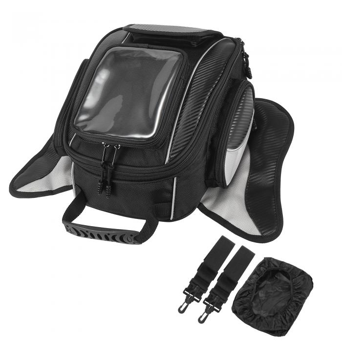 Motoforti オートバイ磁気タンクツールバッグ 燃料サドルバッグ ユニバーサル ストラップ付き 防水 ブラック