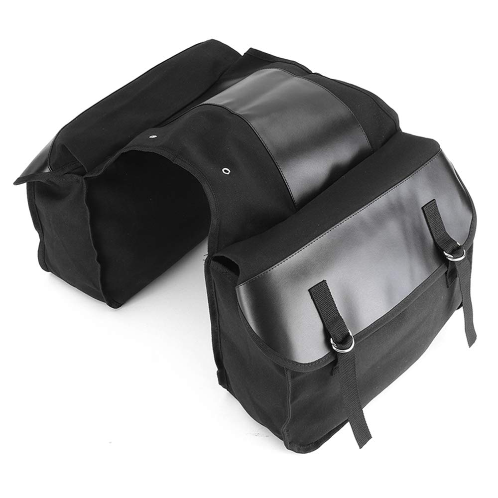 オートバイサドルバッグ オートバイ荷物バッグ 防水キャンバス クイックリリースバックル 1ペア ブラック 91x39cm