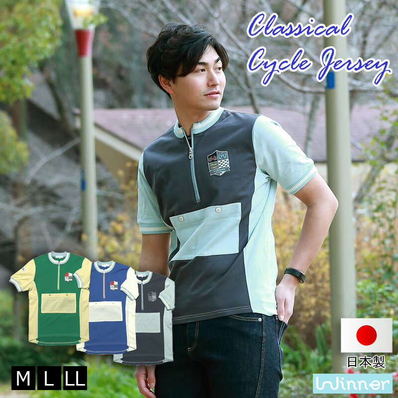 アウトレット Winner クラシカルサイジャー メンズ 春夏 半袖 コットン サイクルジャージ バックポケット サイクルウェア カジュアル 全3色 M-LL おしゃれ 街乗り ヴィンテージ レトロ ワッペン ロードバイク ポタリング ブランド 送料無料 高品質 日本製