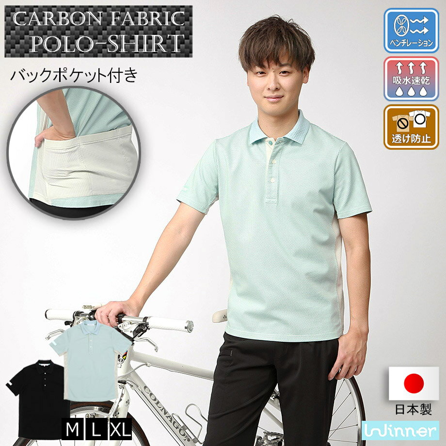 Winner カーボン調 ポロシャツ メンズ 春夏 半袖 サイクルウェア カジュアル 全2色 M-XL きれいめ ゴルフウェア バックポケット ベンチレーション メッシュ サイクリング ロードバイク クロスバイク 送料無料 高品質 ギフトラッピング 日本製