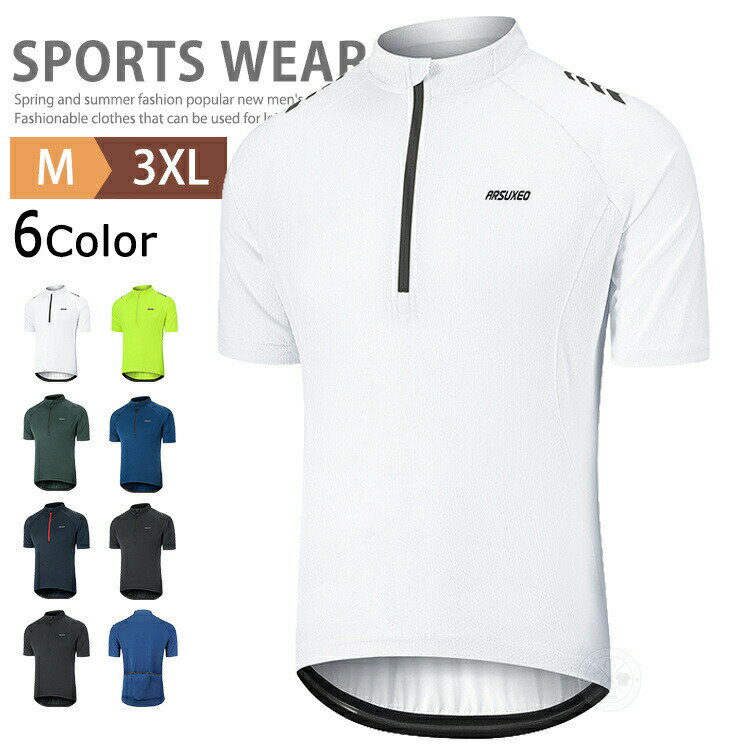 バックポケット付 Tシャツ メンズ ハーフジップ 半袖 サイクルジャージ サイクルTシャツ スポーツシャツ プルオーバー シャツ カジュアル 自転車ウエア 吸汗速乾 通気性 ジップシャツ ZIPシャツ ロゴT ロードバイク ゴルフウェア おしゃれ 父の日 夏