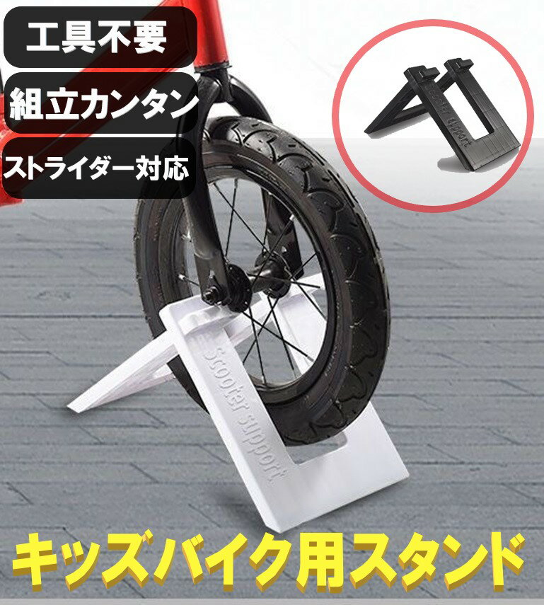 送料無料 子供用バイクスタンド キックバイクスタンド 子供用自転車スタンド 収納 固定 ディスプレイ 片輪 キッズバイク ペダルなし二輪 遊具用 ストライダー用 バランスバイク用 トレーニングバイク用 ランニングバイク用 整理整頓 片付け 玄関 駐車場 黒 白