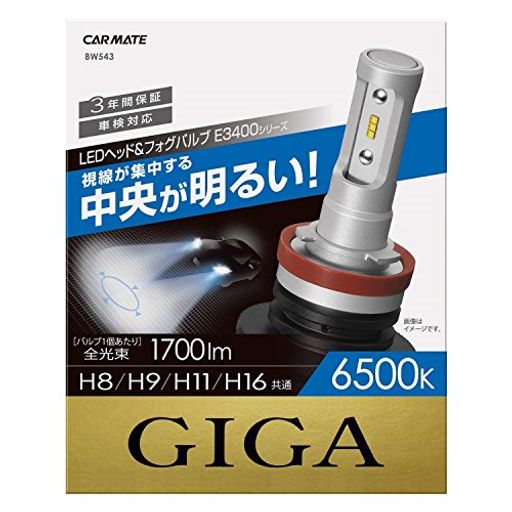 カーメイトGIGALEDヘッドライトフォグライトE3400シリーズH8/H9/H11/H16共通6500K1700lm(1灯あたり)車検対応3年間保証BW543