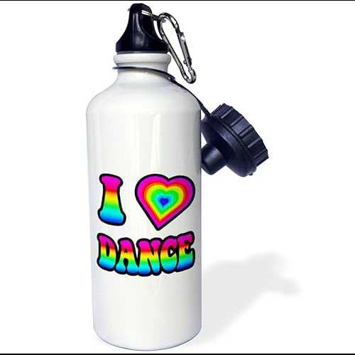 3dRose Groovy Hippie Rainbow I Heart Love Dance-Sports Water Bottle, 21oz , Multicolored