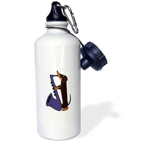 3dRose Funny Dachshund Dog Playing Saxophone-Sports Water Bottle, 21oz , 21 oz, Multicolored