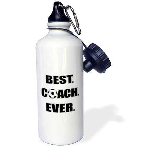 3dRose Best Coach Ever-Black and White-Sports Water Bottle, 21oz , Multicolored