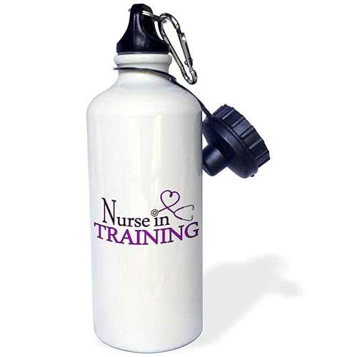 3dRose Nurse in Training Purple Heart Stethoscope-Sports Water Bottle, 21oz , Multicolored
