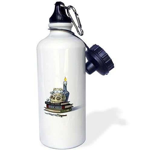 3dRose Scary Halloween Skull On Books With A Frog and Candle-Sports Water Bottle, 21oz , 21 oz, Multicolor
