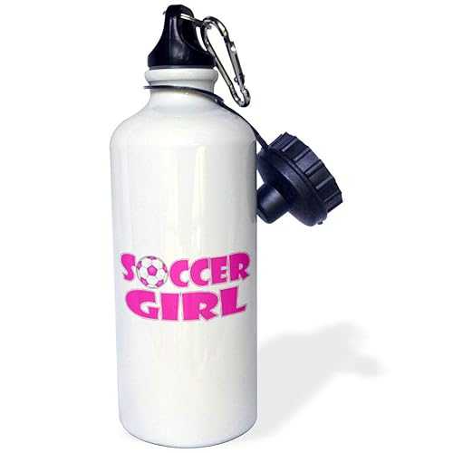 3dRose Soccer Girl Pink and White-Sports Water Bottle, 21oz , 21 oz, Multicolor
