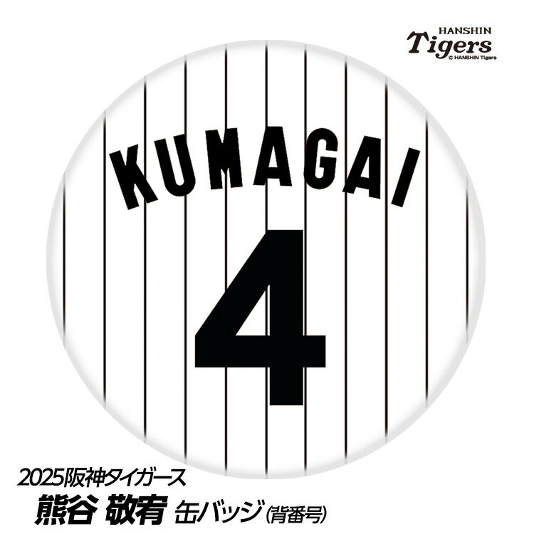 阪神タイガース #4 熊谷敬宥 缶バッジ(背番号デザイン)[プロ野球 球団 阪神ファン バッチ 推し 選手 缶バッチ]