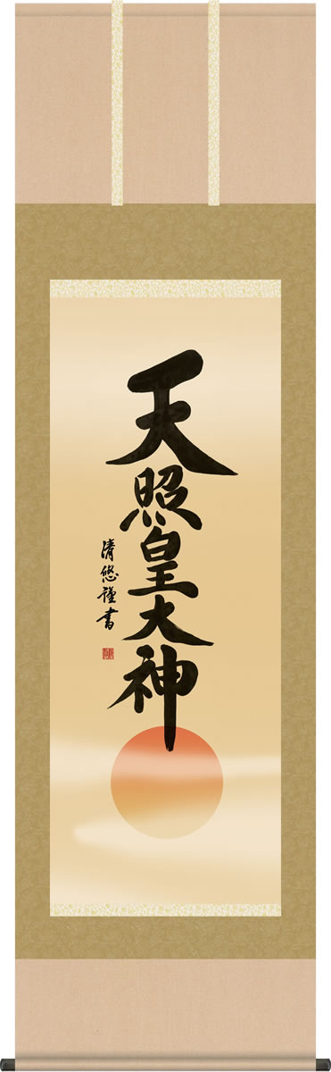 神事用掛軸-天照皇大神/吉田清悠(尺五)床の間 書 天照大御神 掛け軸 モダン 正月 祭事 高級 日本製 表装 吊るし 飾り[送料無料] ギフト 贈り物[幅54.5cm×高さ190cm]