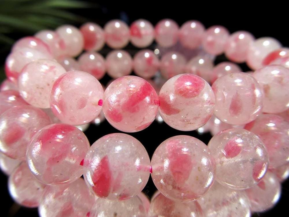 【当店オススメ】透明感あり 恋を呼び込む石 ストロベリークォーツ 【苺水晶】 ランダムカット ブレスレット