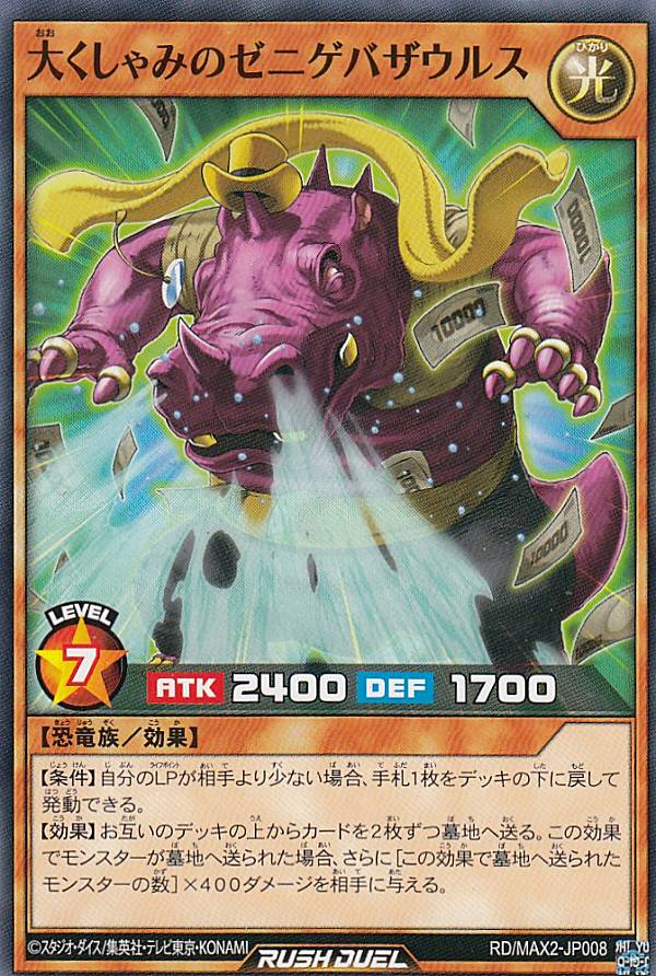 遊戯王 ラッシュデュエル RD/MAX2-JP008 大くしゃみのゼニゲバザウルス (日本語版 ノーマル) マキシマム超絶進化パック